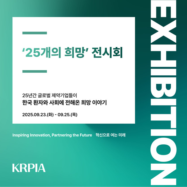 To commemorate the 25th anniversary of the Korea Research-based Pharmaceutical Industry Association (KRPIA), a special exhibition titled ‘25 Moments of Hope’ was planned and organized to highlight the positive impact member companies have delivered to patients and local communities. The exhibition showcases 25 selected works submitted by member companies, visually presenting examples of social contributions across various fields—including treatment accessibility, patient experience, and education, culture, and the environment. The exhibition offers a comprehensive view of the member companies’ longstanding commitment to patient-centered values and social responsibility.